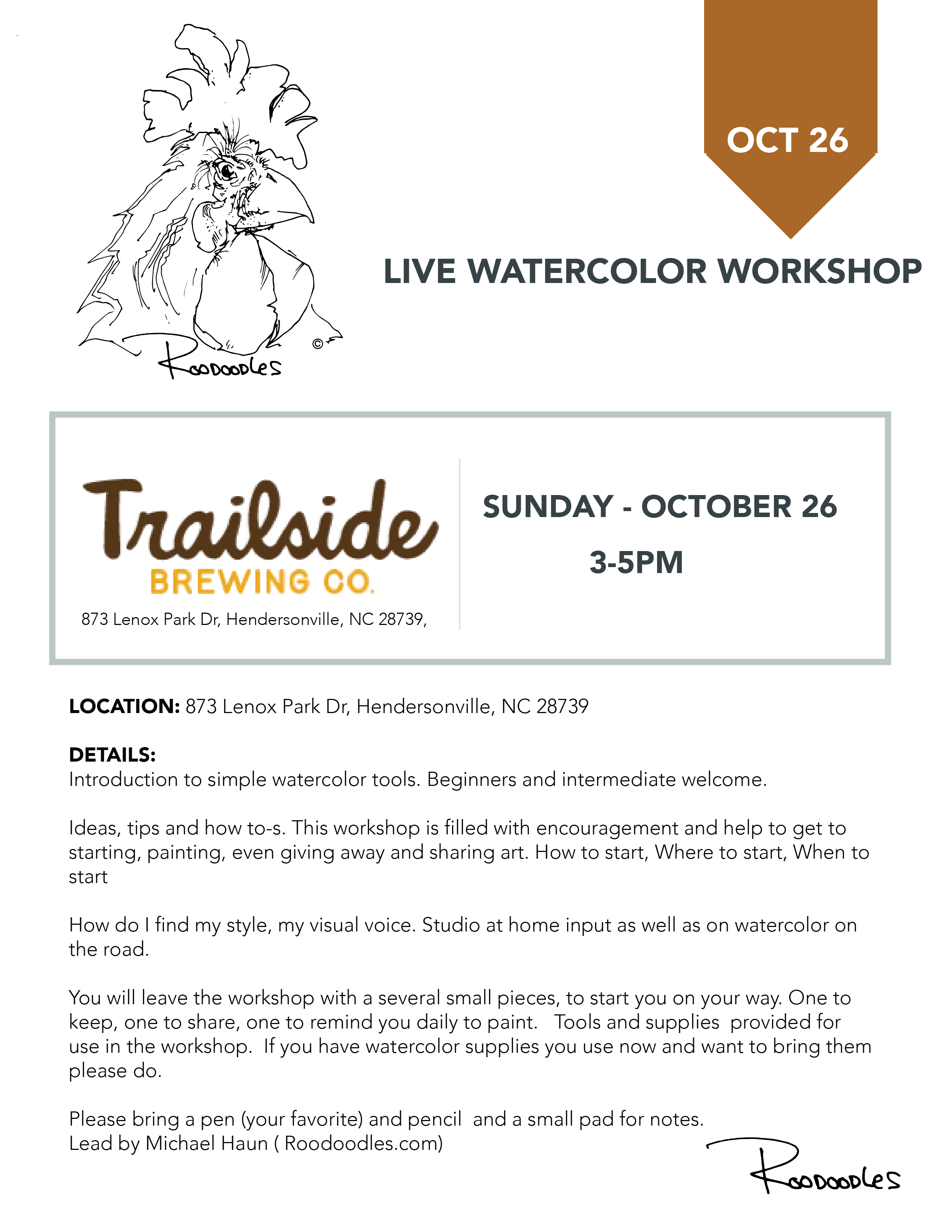 October 26 | Watercolor Workshop -Trailside Brewery x Roodoodles